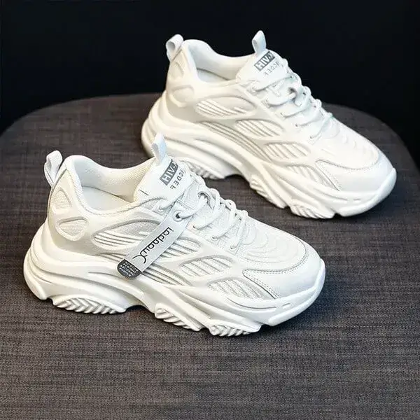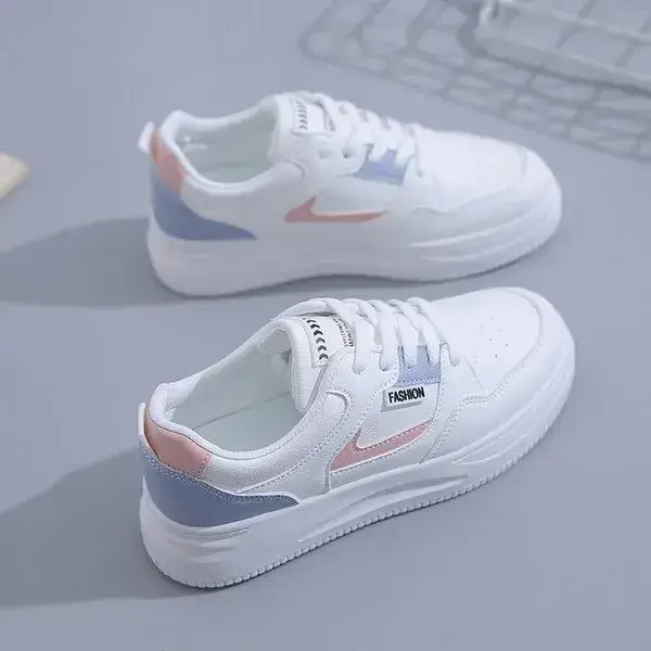 Womens Platform Sneakers | Round Toe Thin Strap Breathable Low-Top Shoes in Brandy, Grey, White Black, White Blue, White Grey