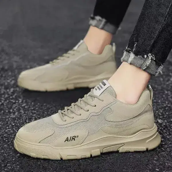 Stay comfortable in any weather with our Mens Breathable Sports Shoes. These temperature-regulating low-top casual shoes in Beige, Black, and Grey feature a breathable synthetic upper and a durable plastic sole with a soft bottom. Perfect for all-day wear, they adapt to your climate needs, accented by "FASHION AIR" branding.