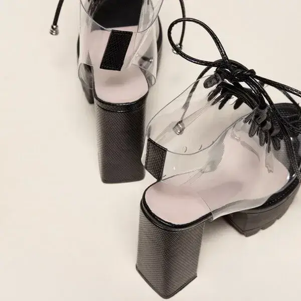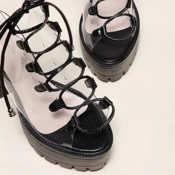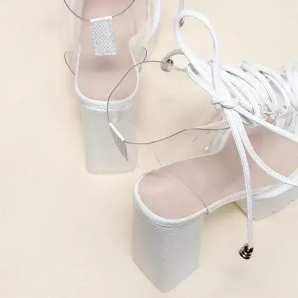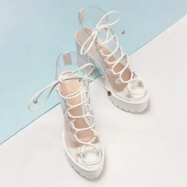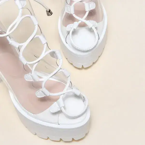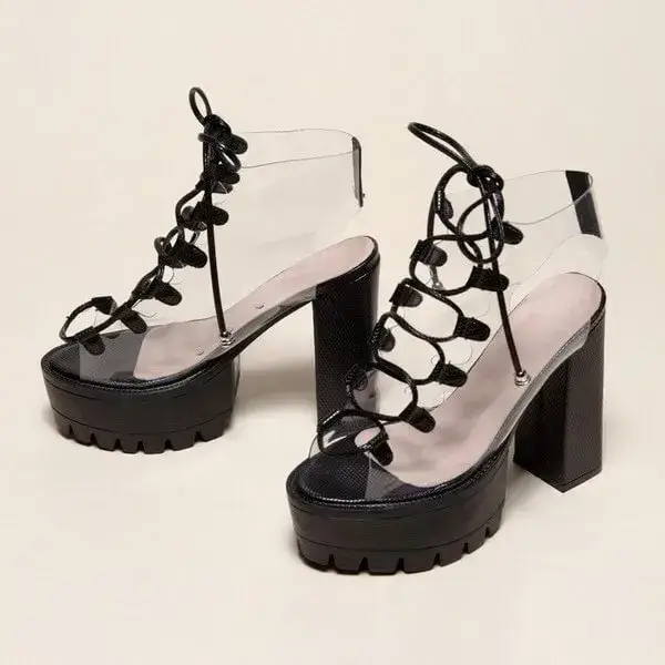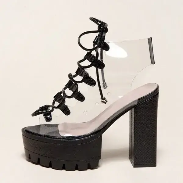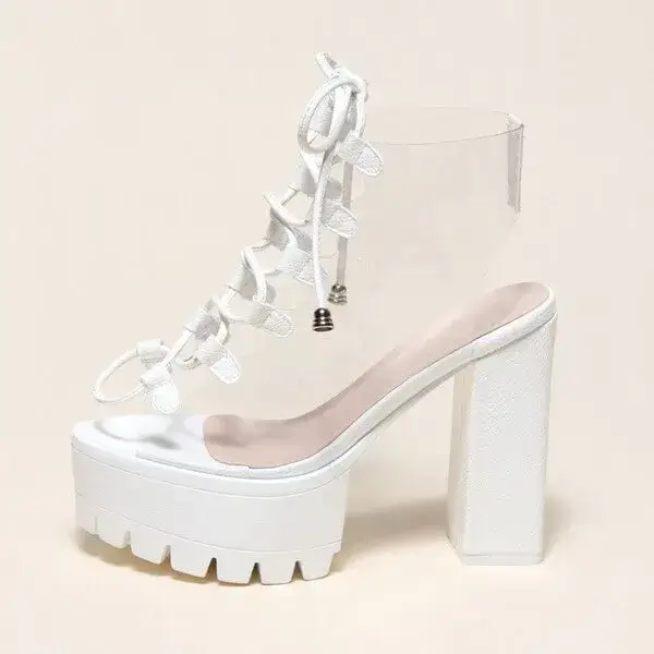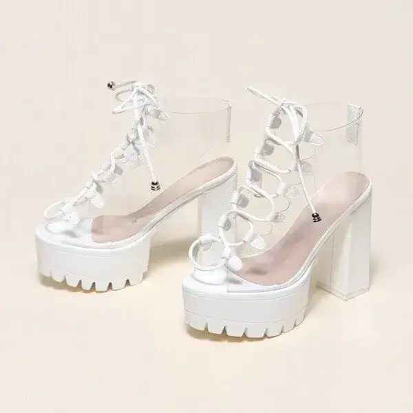 Womens Transparent Lace-Up Platform Heels | Open-Toe Block Shoes in Black, White, Yellow